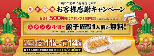 6月23日から12月10日まで餃子の王将が実施している「2024年版ぎょうざ倶楽部 お客様感謝キャンペーン」が間もなく終わるということで、餃子の王将から、2つの年末年始恒例のキャンペーンのお知らせがあったのである。 12月11日からは、毎年恒例の「年末年始 …