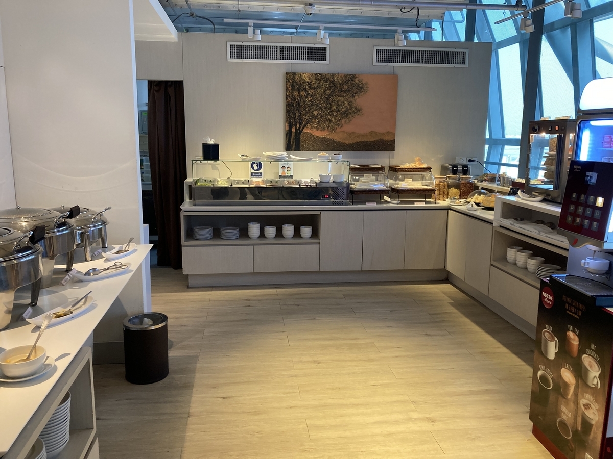 出国エリアには、プライオリティパスが利用できるラウンジが13箇所もあるが、迂闊にも事前に調べてなかったので、安直に搭乗ゲートにF6に近いFコンコースの付け根にあるミラクルファーストクラスラウンジを利用したのである。一応、タイ料理、サンドイッチなどの軽食、サラダ、カットフルーツ、ソフトドリンク、ミネラルウォーター、酒類、コーヒー、デザートなど一通り揃っているのであるが、小さいラウンジということで、軽食類の種類が少ないのが欠点かもなのである。